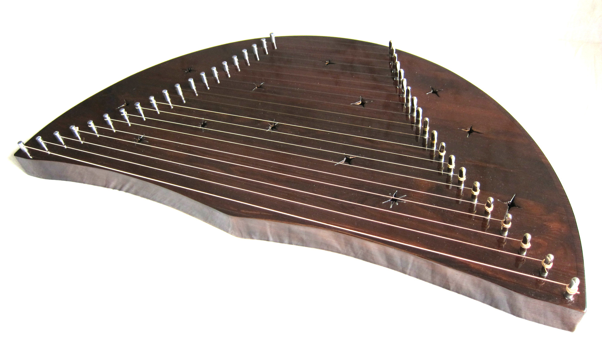 Очень радуют Димины инструменты, и звуком и формой! У меня шлемовидные, 20 струн. Вишня. Звук красивый и объемный. Единственное совет всем, кто хочет встроенный звукосниматель, лучше говорить об этом сразу, когда инструмент еще не сделан.