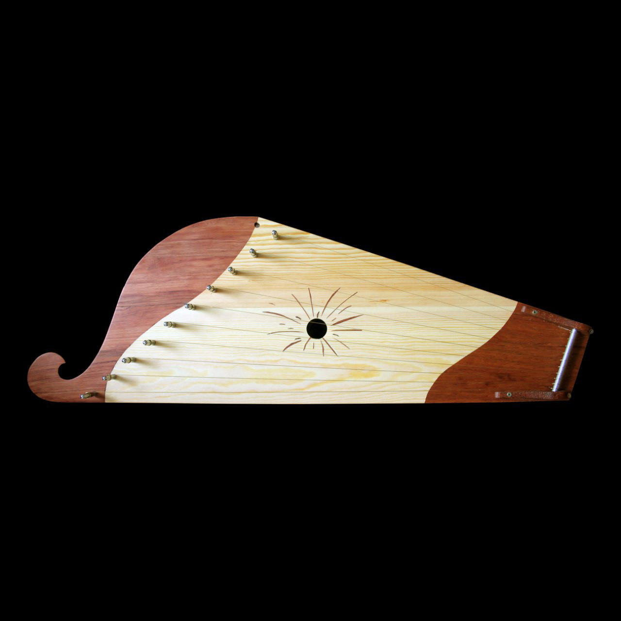 Материал: Ангарская сосна. Стальные колки Meyne. Пример звучания гуслей: https://youtu.be/p0nD47_8x90