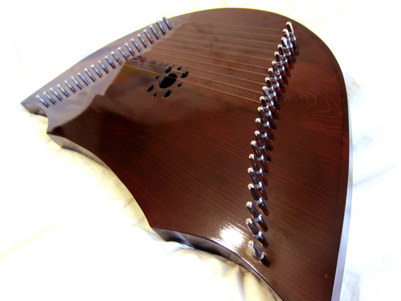 Очень радуют Димины инструменты, и звуком и формой! У меня шлемовидные, 20 струн. Вишня. Звук красивый и объемный. Единственное совет всем, кто хочет встроенный звукосниматель, лучше говорить об этом сразу, когда инструмент еще не сделан.